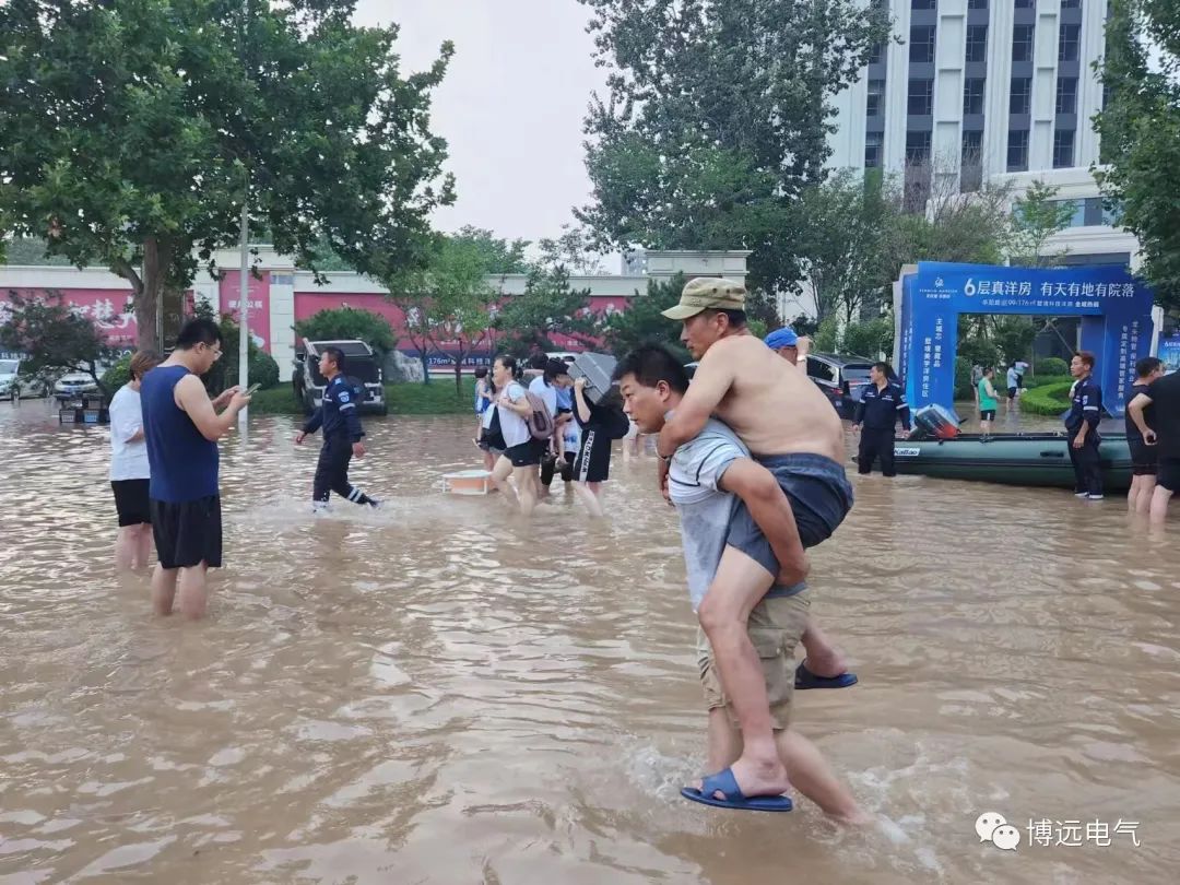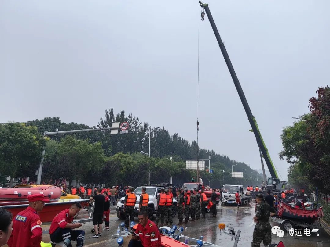 連日來,由于極端強降雨天氣和上游河道行洪等因素,保定涿州防汛形勢嚴峻。八方馳援,同舟共濟,在了解涿州受災情況后博遠電氣涿州辦事處第一時間組織人員協助救援隊參與到救人行動中。